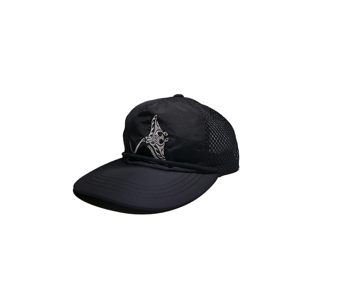 챙 위의 끈으로 바람에 날아가지 않토록